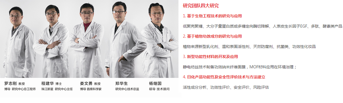公司與華南理工大學個人護膚品創新研究中心建立了戰略合作伙伴關系,研發團隊是由華南理工大學生物醫學、輕化工、高分子材料和綠色環保等領域的知名教授專家組建而成,并與全球科研機構及專家合作進行日用化學和個人護理品領域的前沿科學技術研究;中心依托華南理工大學強大的科研實驗平臺和人才優勢,整合校內各學科資源進行集成創新;研發中心擁有一支有專家教授、博士、碩士、歸國人員等組成的精英團隊,開展日化產品、個人護理品以及養生用品等方面的核心技術開發、配方設計、功效評價和安全性能評估等方面的研究;中心設備先進,擁有分析測試中心和天然產物開發中心,立足華南,服務全國,為國內外企業提供創新技術支撐和服務交流平臺。
